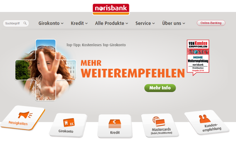 A közkedvelt Norisbank 100€ jóváírást ad minden új ügyfélnek akik aktívan használják a számlát.