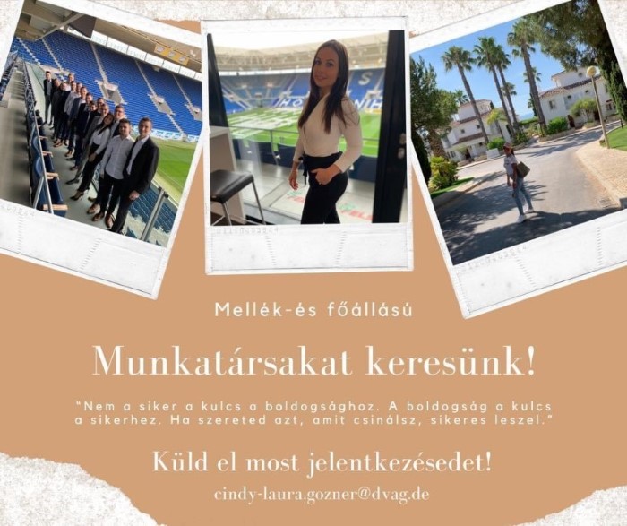 Akkor várjuk jelentkezésed telefonon 015228613332 vagy e-mailen cindy-laura.gozner@dvag.de