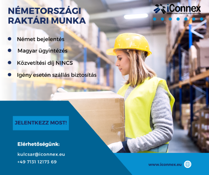 Az iConnex GmbH egy évek óta dinamikusan növekvő német cég, amely már több száz elégedett munkavállalóval rendelkezik. A vállalat Németország Baden-Württembergi tartományában van jelen és sokéves tapasztalattal rendelkezik a kelet Európai térségből érkezett munkavállalók foglalkoztatásában. Cégünket kimagaslóan jó minőség és megbízhatóság jellemzi, munkavállalóinkra kiemelt figyelmet fordítunk.
