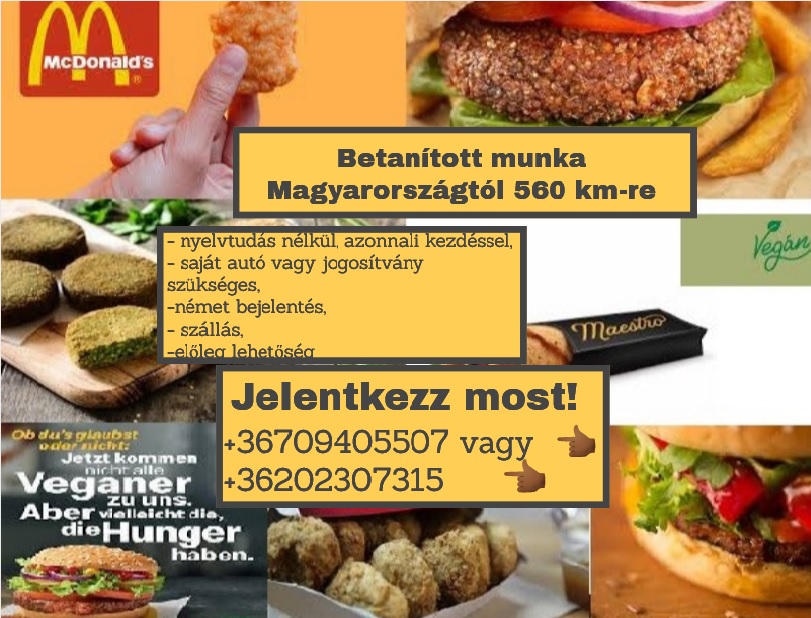 Szászországba keresünk, Magyarországtól mindössze 560 km-re betanított munkásokat. Férfiak, hölgyek, párok  személyében, lehetőség szerint saját autóval és jogosítvánnyal. Jelentkezni lehet: fényképes önéletrajzzal, megjelölve mikor tud Németországba utazni, pár napon belül. A kiutazás, önállóan önköltségen történik a kapott címre.
