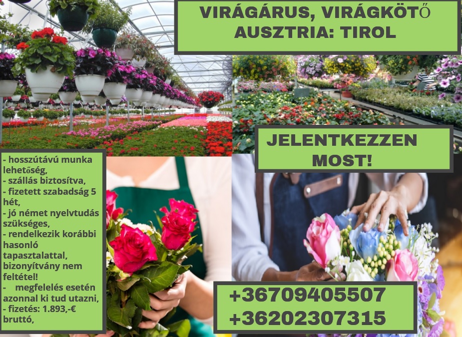 Önéletrajzot az alábbi e-mail címek egyikére lehet küldeni, tárgy mezőbe: virágkötő