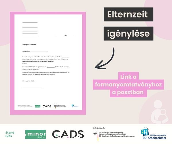 Német és magyar nyelvű formanyomtatványok Elternzeit igényléséhez.