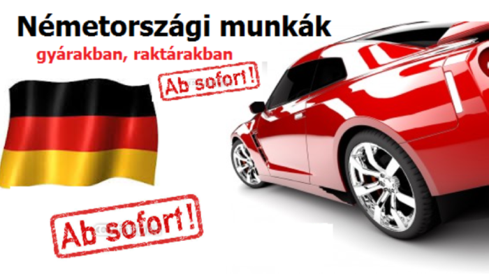 Németországba Regensburgtól nem messze (Budapesttől 650 km) keresünk gyári munkásokat autógyárba. A munkavégzés német munkaerő kölcsönző cégen keresztül, német bejelentéssel történik a német jogszabályoknak megfelelően. 1200 EUR fizetést kínálunk, melyhez a pótlékok és túlóra jön hozzá. A munkahely mellett szállást is intézünk, panzió jellegű szállásokon 200 EUR összegért.
