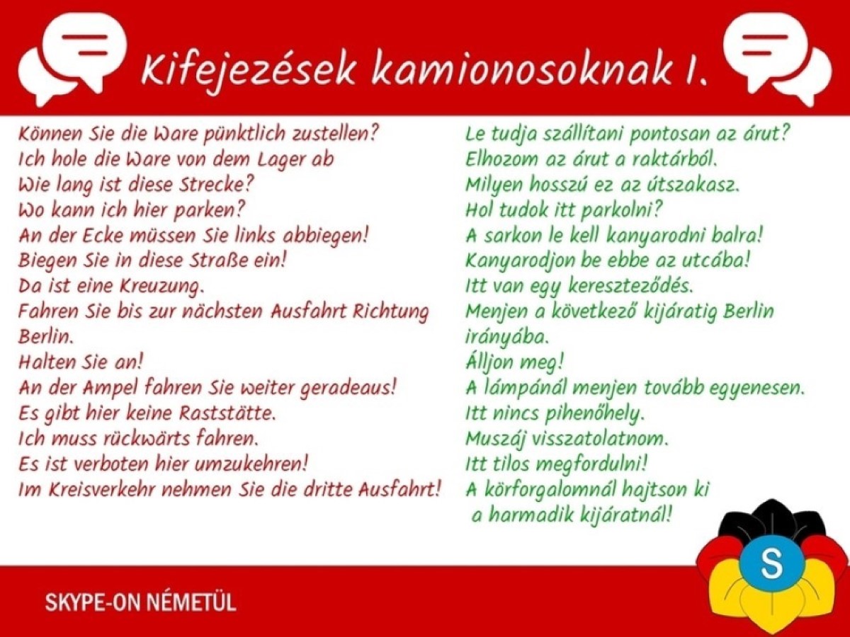 német nyelvtanulás, német nyelvleckék, kamionosoknak, sofőröknek