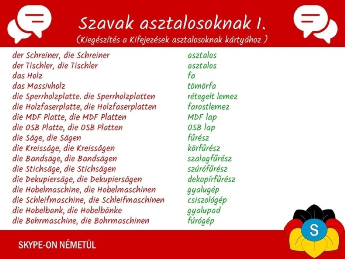 német nyelvleckék, szavak, asztalosoknak, tananyagok
