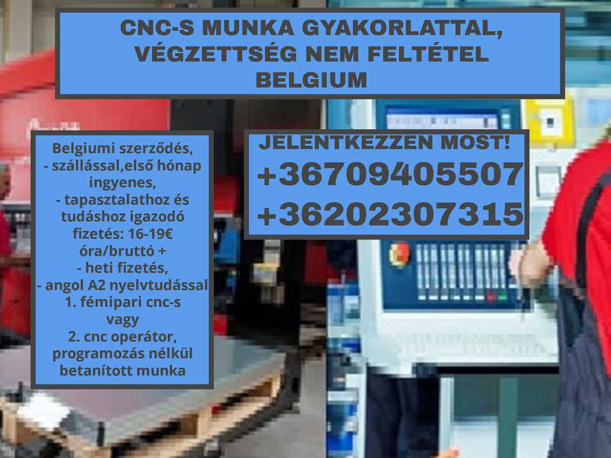 Belgiumi partnercégünk megbízásából keresünk CNC-s munkásokat.