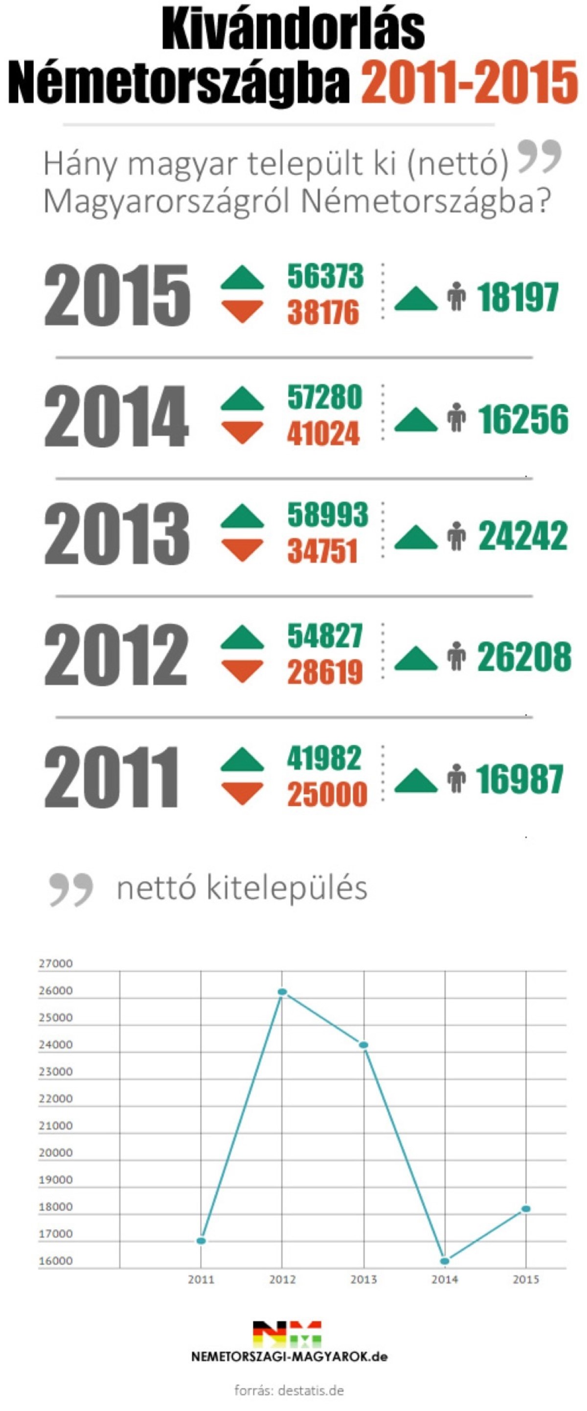 Hány magyar költözött ki Magyarországról Németországba 2011-2015 között? Hányan költöztek haza?
