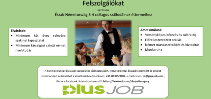 Amennyiben érdekli az álláslehetőség, kérem, küldje el fényképes önéletrajzát a candidate@plus-job.com e-mail címre, megjelölve a hirdetés forrását!