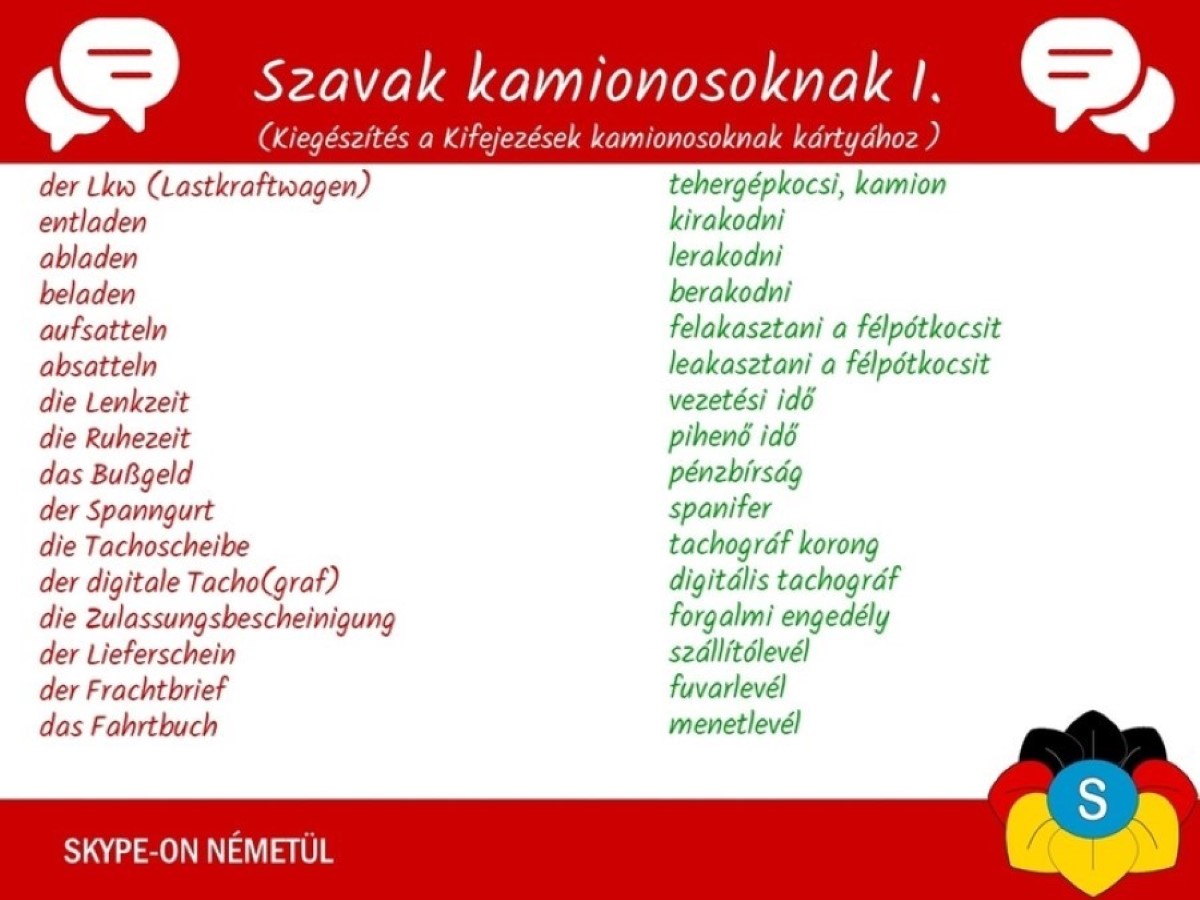 Német nyelvleckék- szavak kamionosoknak 1. rész