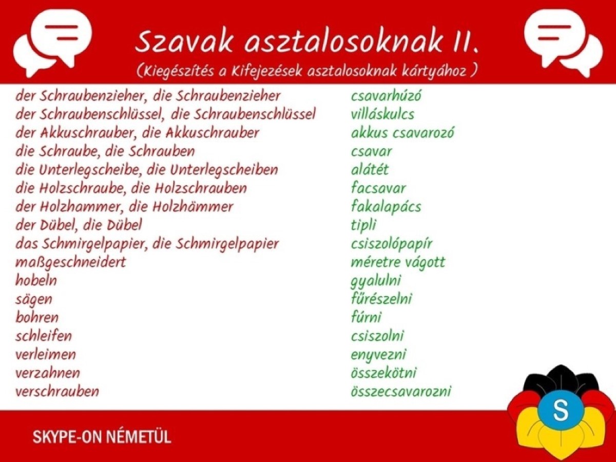 német nyelvleckék, szavak, asztalosoknak, tananyagok