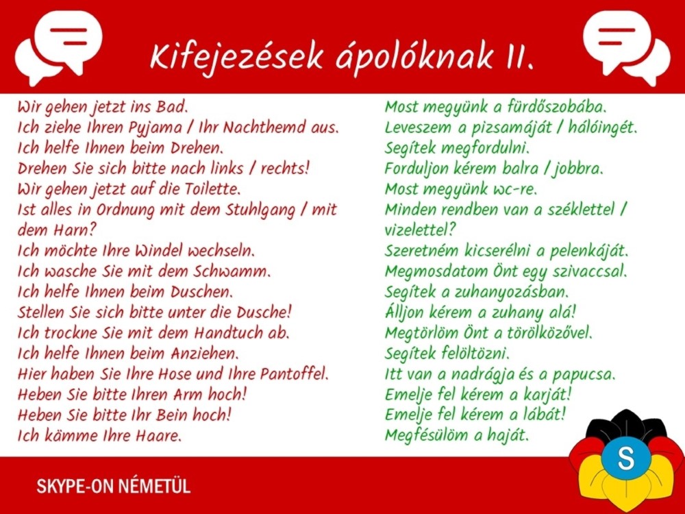 német nyelvleckék, tananyagok, kifejezések, ápolóknak