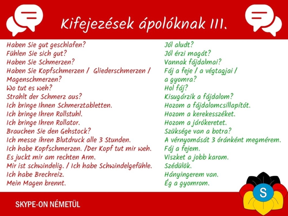 német nyelvleckék, tananyagok, kifejezések, ápolóknak