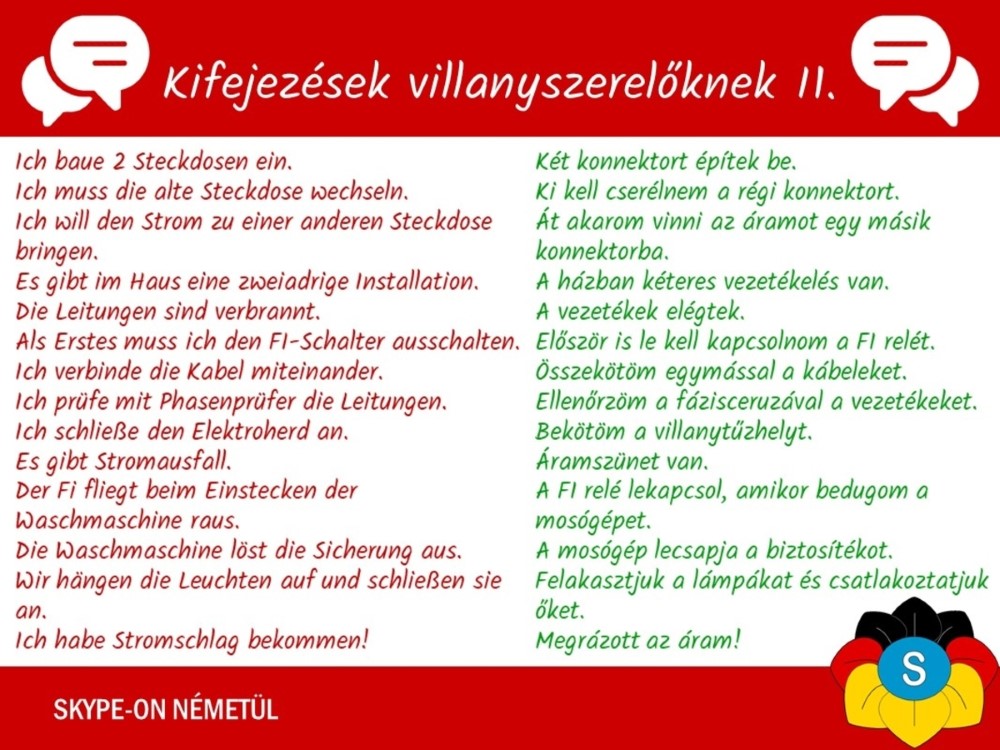 Német nyelvleckék- Kifejezések villanyszerelőknek 2. rész