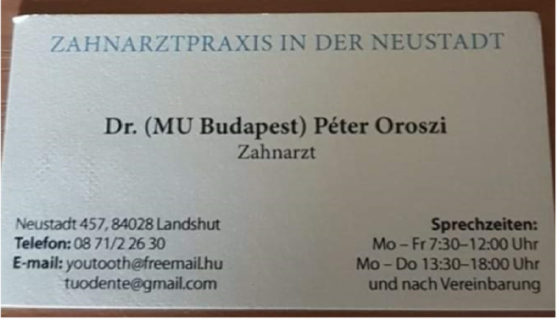 Város Landshut fogorvos Bundesland Bayern Neustadt 457, 84028 Landshut +49087122630 tuodente@gmail.com A hozzászóláshoz regisztráció és bejelentkezés szükséges