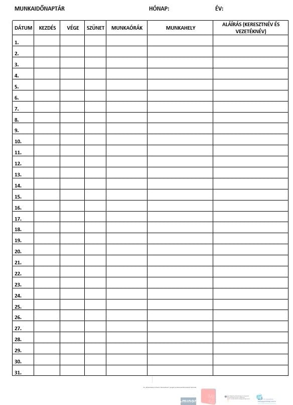 munkaidőnapló, munkaidőnaptár, munka, arbeit, arbeitszeitkalender