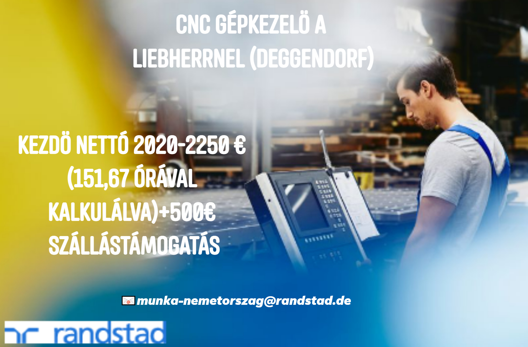 CNC gépkezelő a Liebherrnél Deggendorfban, nettó kezdö 2020-2250 € + ingyenes, egy fős, kultúrált szállás vagy lakhatási támogatás* havi 500 €-ig