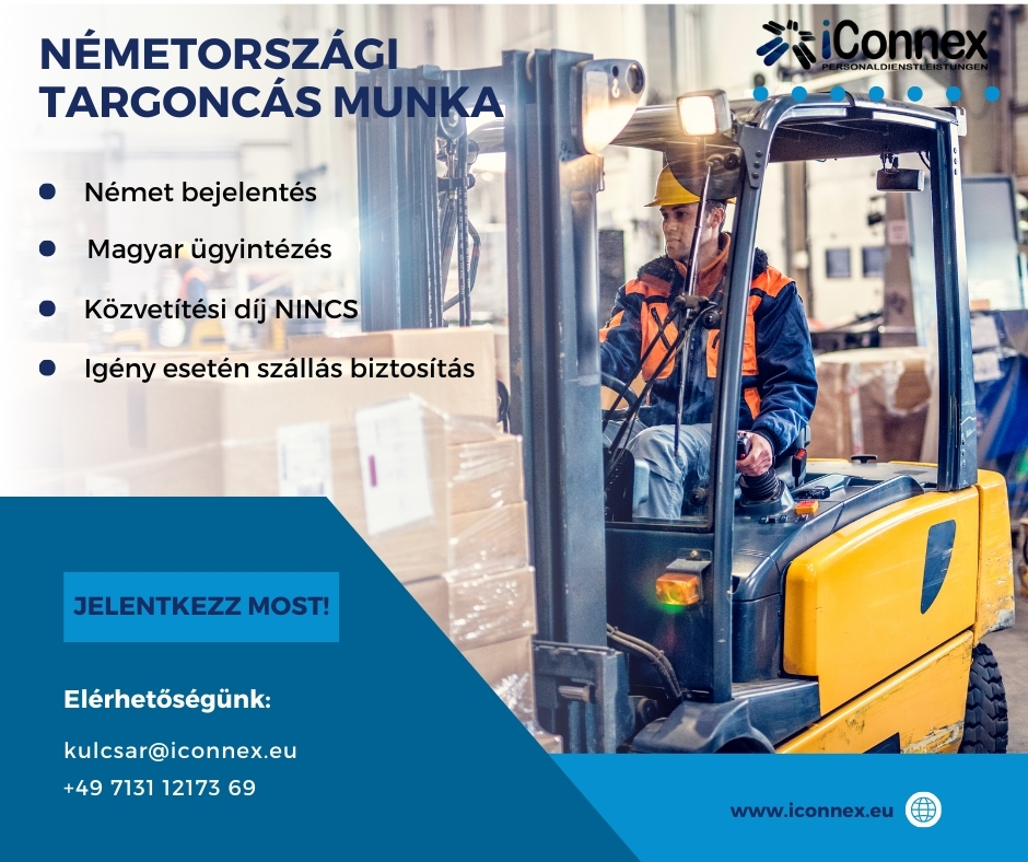 Német szerződés és bejelentés, közvetítési díj nélkül. Igény esetén szálláslehetőséggel!