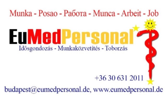 Amennyiben ajánlatunk felkeltette érdeklődését és a fent megadott feltételeknek megfelel, küldje el fényképes szakmai önéletrajzát német nyelven, valamint ápolói végzettséget igazoló bizonyítványmásolatait még ma e-mailben az info@eumedpersonal.de vagy a budapest@eumedpersonal.de címre.
