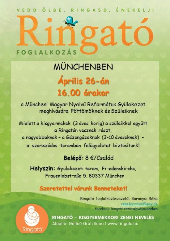 A Ringató foglalkozást Baranyai Réka vezeti, (reka.baranyai@gmx.de).