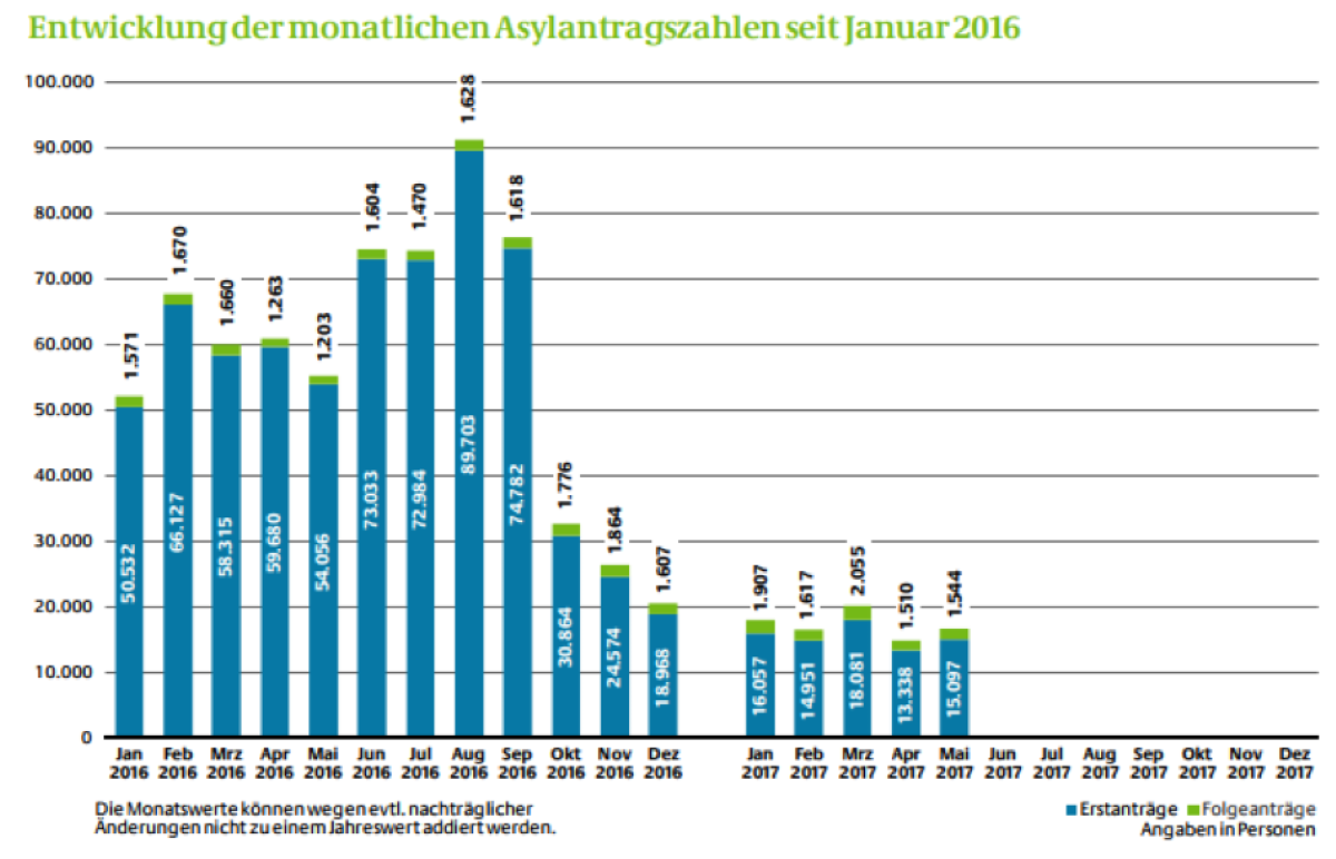 Hogy alakultak a menekültjogi kérelmek száma Németországban 2017 január és május között