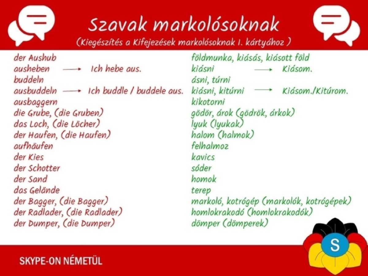 Német nyelvleckék - szavak markolósoknak