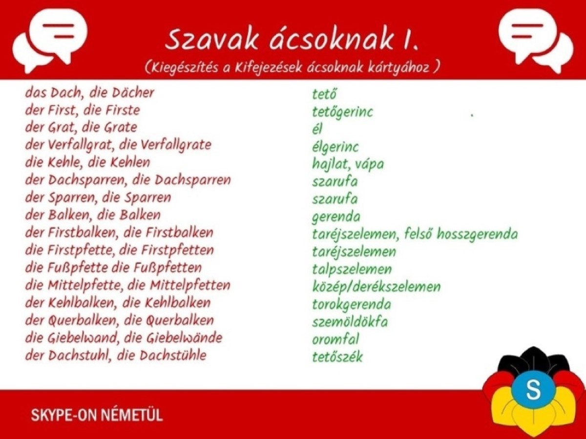 Német nyelvleckék- szavak ácsoknak 1