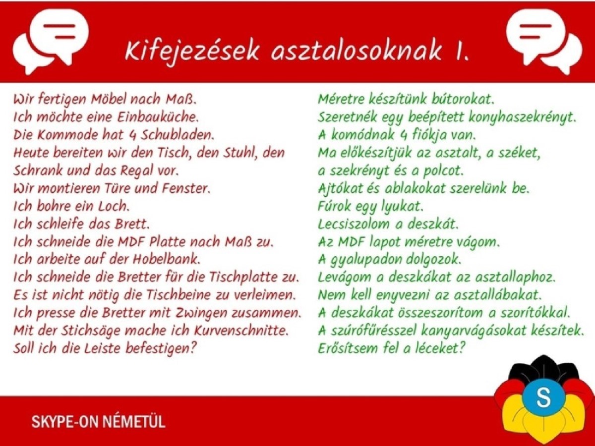 német nyelvleckék, kifejezések, asztalosoknak, tananyagok