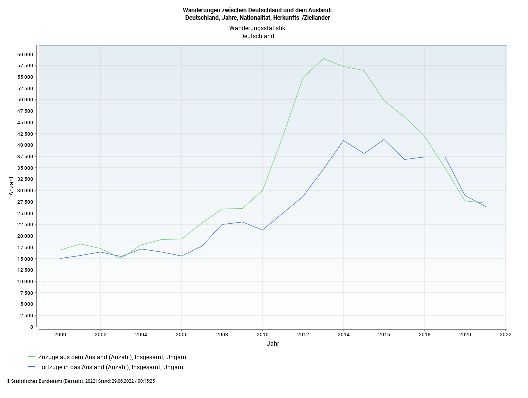 2022-es vándorlási adatok Magyarország és Németország között