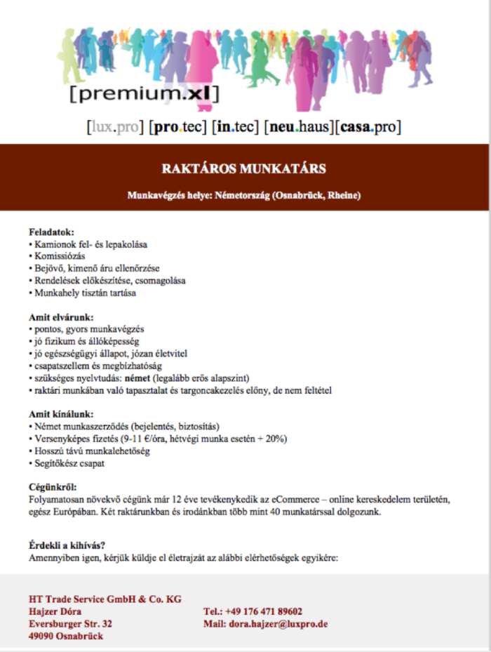 • szükséges nyelvtudás: német (legalább erős alapszint)
