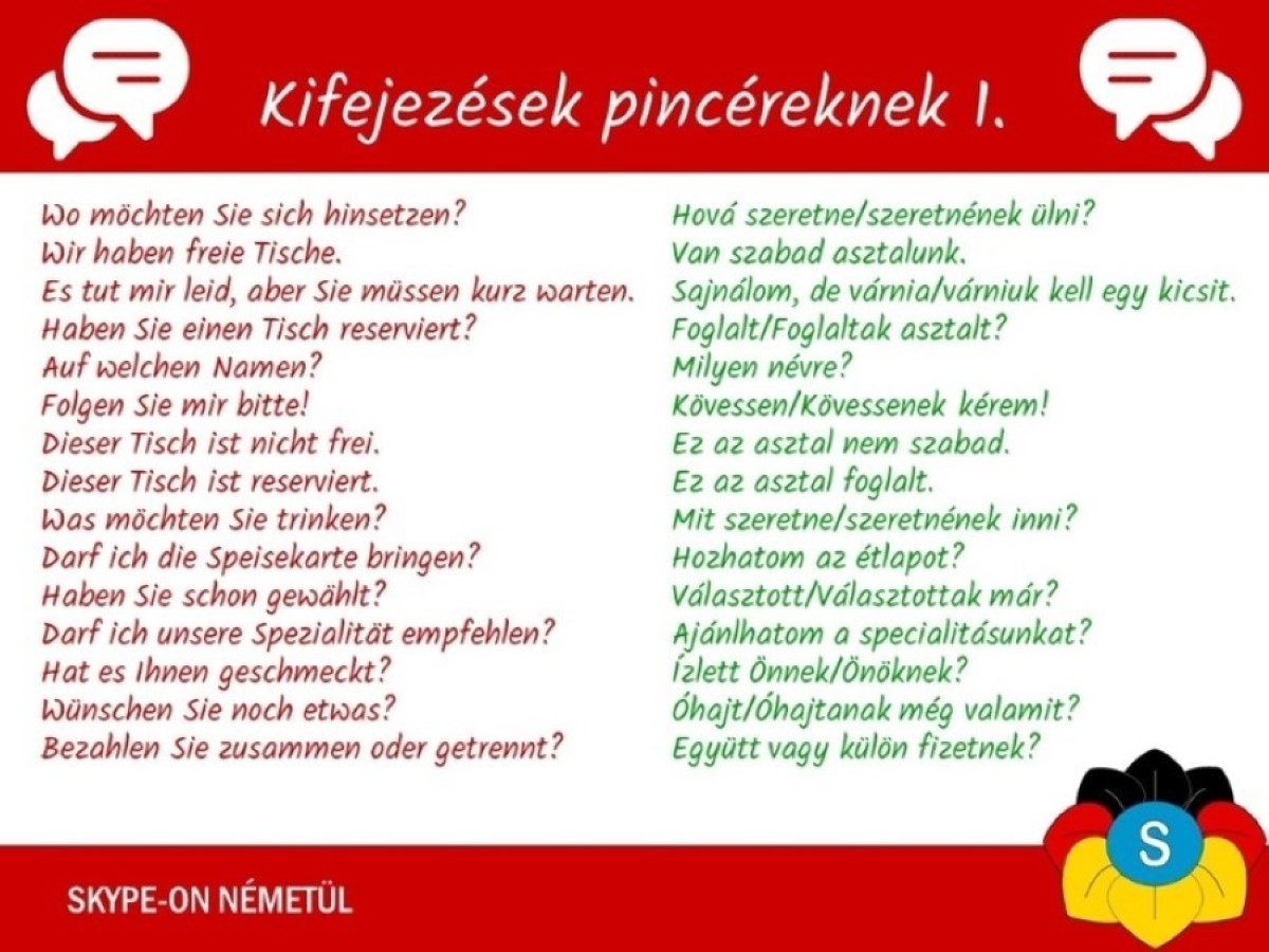 német nyelvleckék, német nyelvtanulás, tananyagok, vendéglátás