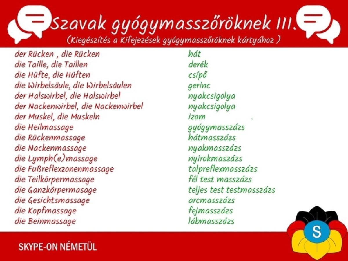 Német nyelvleckék- szavak gyógymasszőröknek 3. rész
